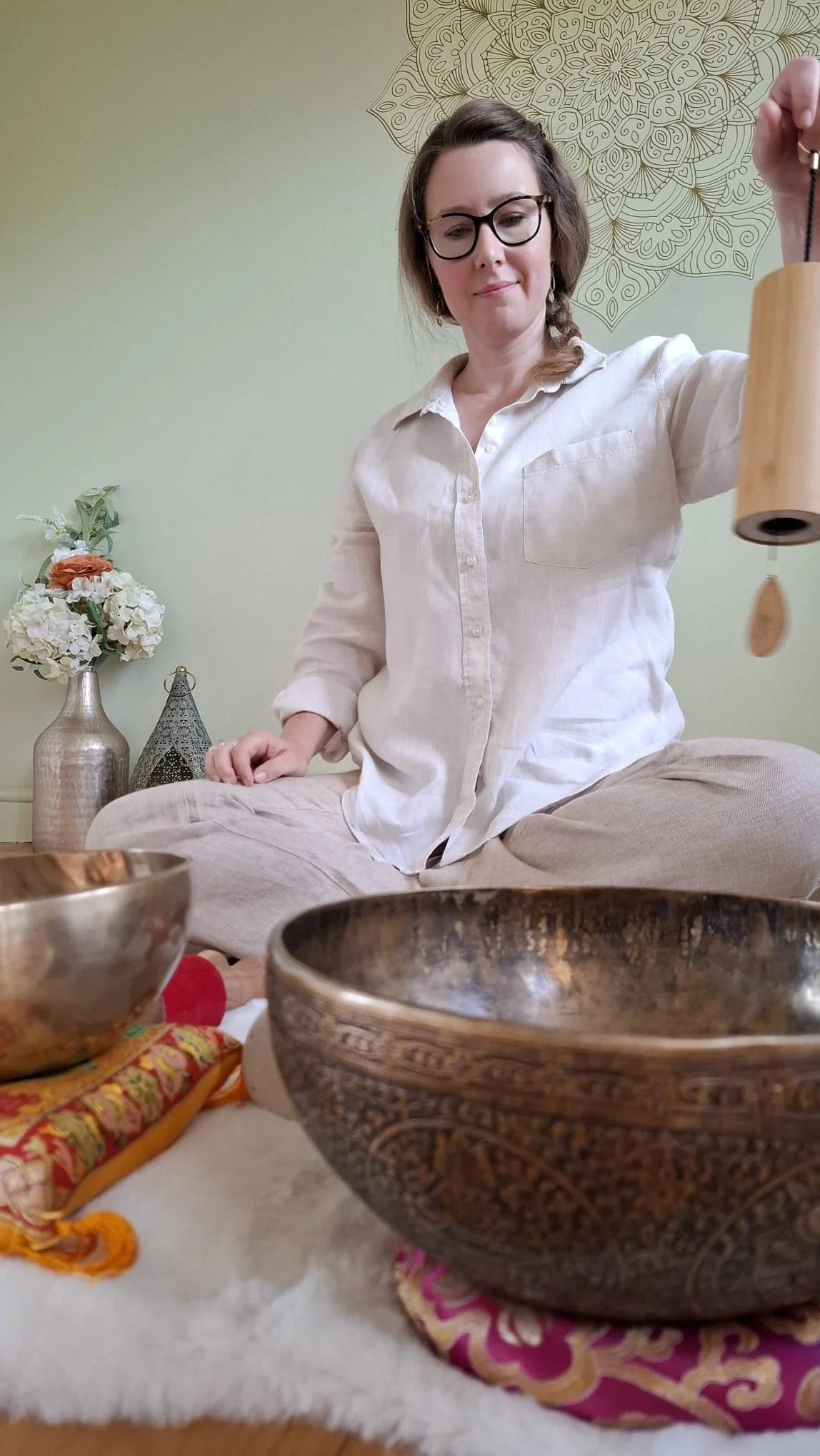 From here, you are guided into a series of deeply supported restorative postures, accompanied by subtle sound and quiet guidance, before drifting into a state of profound rest through Yoga Nidra.